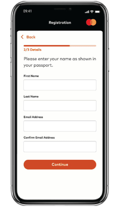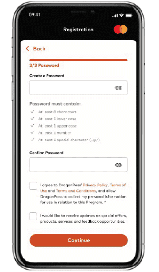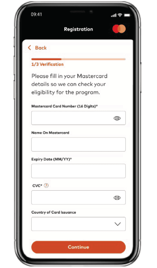 Masuk ke aplikasi Mastercard Travel Pass, lalu pilih ”Sign Up”, lalu isi sesuai dengan data Kartu Kredit BCA Mastercard World. |