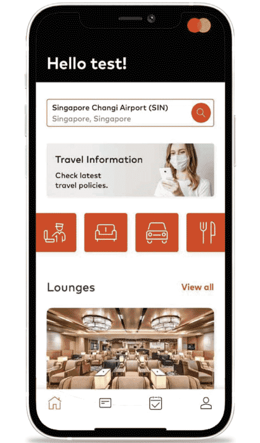 Log in ke apliaksi Mastercard Travel Pass. Untuk melakukan reservasi, Nasabah dapat memilih icon yang tertera pada aplikasi. |