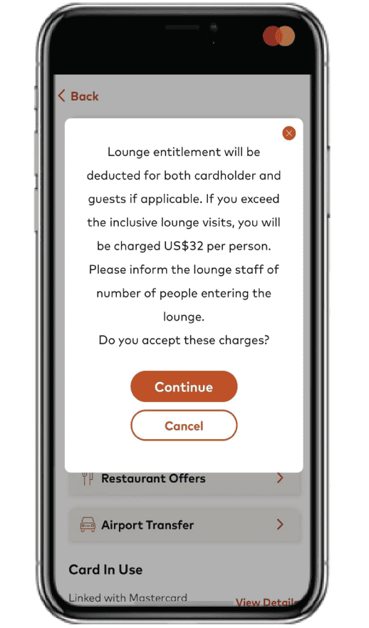- Untuk masuk ke dalam airport lounge, Member & Guest Mastercard Travel Pass akan dikenakan biaya sebesar USD32/pax/akses