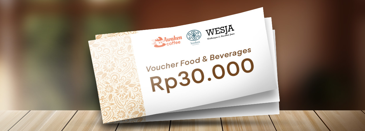 - Voucher Food & Beverages dapat digunakan di Kooken Café, Awaken Coffee Shop, dan Wesja